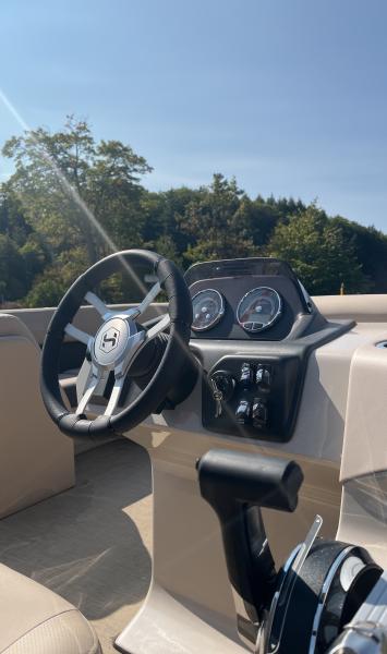 Entertain your friends, escape to your happy place, and find your ideal fishing spot on the classic Cruiser, a pontoon for everyone that can take you anywhere. Discover an array of amenities and impeccable detailing that go hand in hand with value, in a package destined to bring happiness to all aboard. Take to the water on a craft built with value in mind that also includes more than you might expect, including ultra-soft yet extremely durably vinyl upholstery, a reclining helm chair, and standard charging station. Personalizing your pontoon for watersports or fishing is simple—and optional performance packages give you better control on rough water.