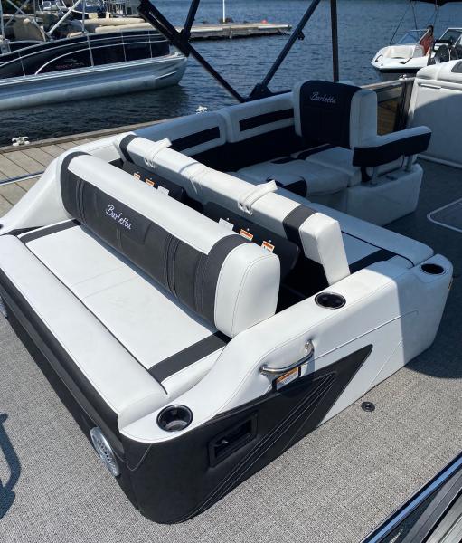 There's something for everyone on the ultra-versatile, ultra-popular Ultra-Lounge. The rear-lounge turns into 5 different seating positions giving you flexibility in any situation. The front chaise lounges are the cherry on top when it comes to seating everyone on board comfortably. Built for those who want everything that makes Barletta great, with a sporty, aggressive stance. Sleek exterior lines with a muscle-car feel, chrome badging, the best helm in its class, and interior furniture featuring three interior accents to add the perfect pop of color, creates an upgraded experience at an astonishing price point. You’ll be the leader of the pack no matter what body of water you call home.