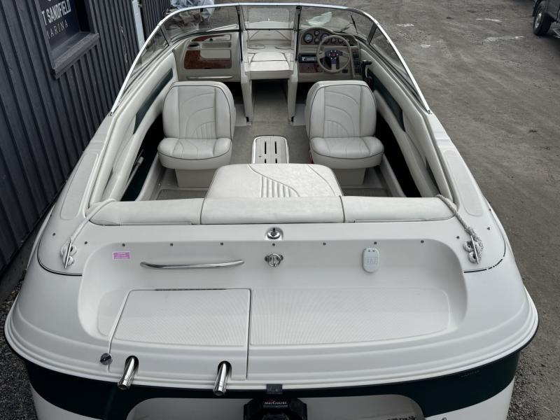 Clean, One owner, Muskoka boat, stored in a boathouse on a lift out of the elements its entire life. 5.7L Merc, Alpha One Drive, 400 hours, stereo system, bow filler cushion, interior is in wonderful shape, snap on cover. No trailer but we can help you find one, they don't make them like this one anymore.