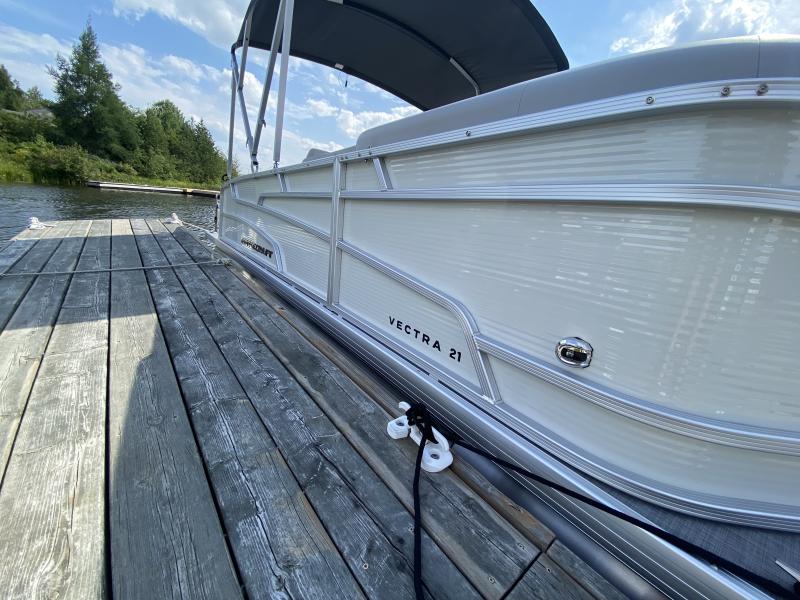 In addition to its practical design, the Vectra is equipped with complete instrumentation, including tachometer, voltmeter, speedometer, trim, and fuel gauges, for full control. The 160-watt AM/FM/Bluetooth® Jensen® Stereo, paired with four waterproof speakers, enhances your time on the water, while the rear swim platform with a stainless steel telescopic boarding ladder makes entering and exiting the water a breeze. The Bimini top covering the stern area provides shade and comfort, ensuring your boating experience is as enjoyable as possible. The Vectra Series offers exceptional value and versatility, perfect for any water adventure.
